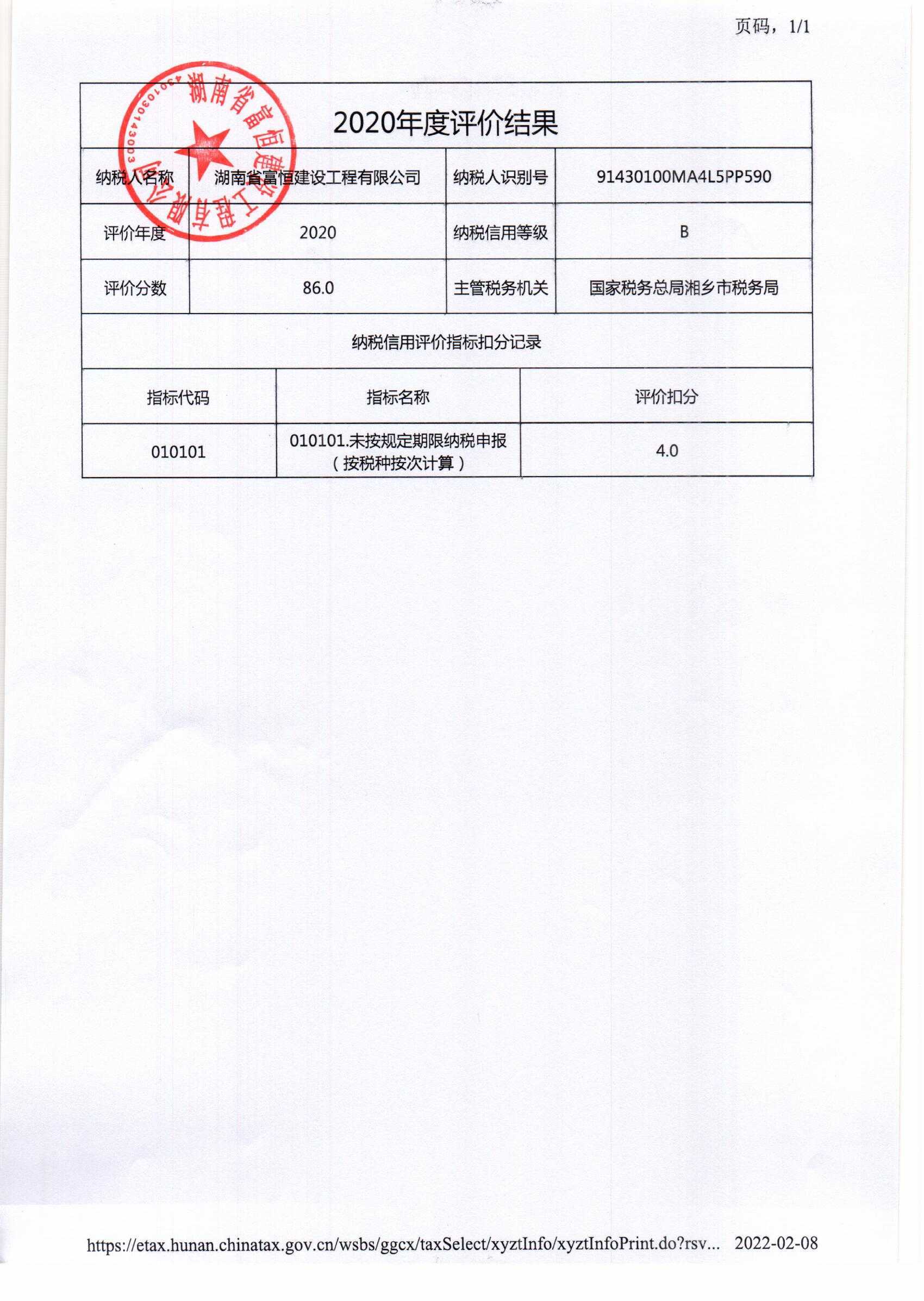 企業(yè)納稅信用等級報告: