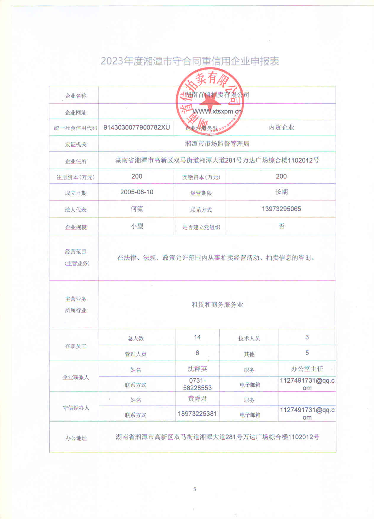 本企業(yè)根據(jù)《湘潭市守合同重信用企業(yè)申報(bào)規(guī)定》等編制 2023 年度企業(yè)信用報(bào)告書,并保證本報(bào)告書內(nèi)容真實(shí)、準(zhǔn)確、完整。