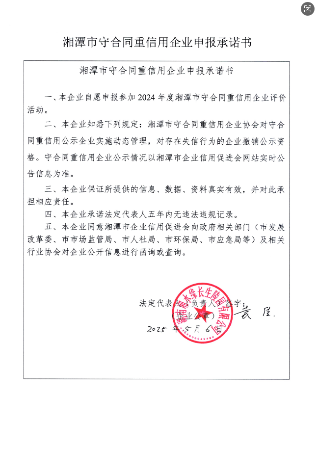 本企業(yè)根據(jù)《湘潭市守合同重信用企業(yè)申報(bào)規(guī)定》等編制 2024 年度企業(yè)信用報(bào)告書,并保證本報(bào)告書內(nèi)容真實(shí)、準(zhǔn)確、完整。