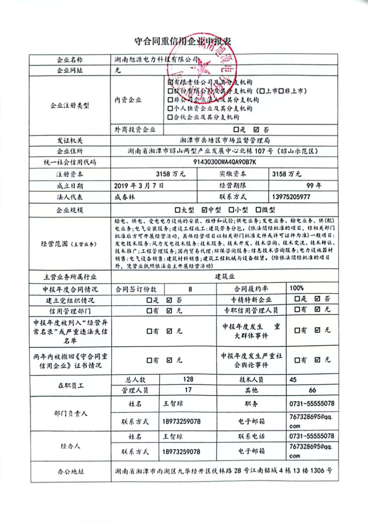 本企業(yè)根據(jù)《湘潭市守合同重信用企業(yè)申報規(guī)定》等編制 2024 年度企業(yè)信用報告書,并保證本報告書內(nèi)容真實、準(zhǔn)確、完整。