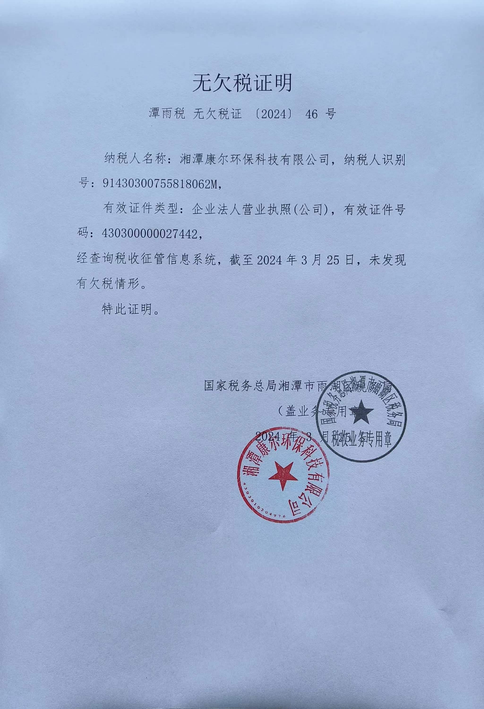 企業(yè)納稅信用等級報(bào)告: 無欠稅證明.jpg