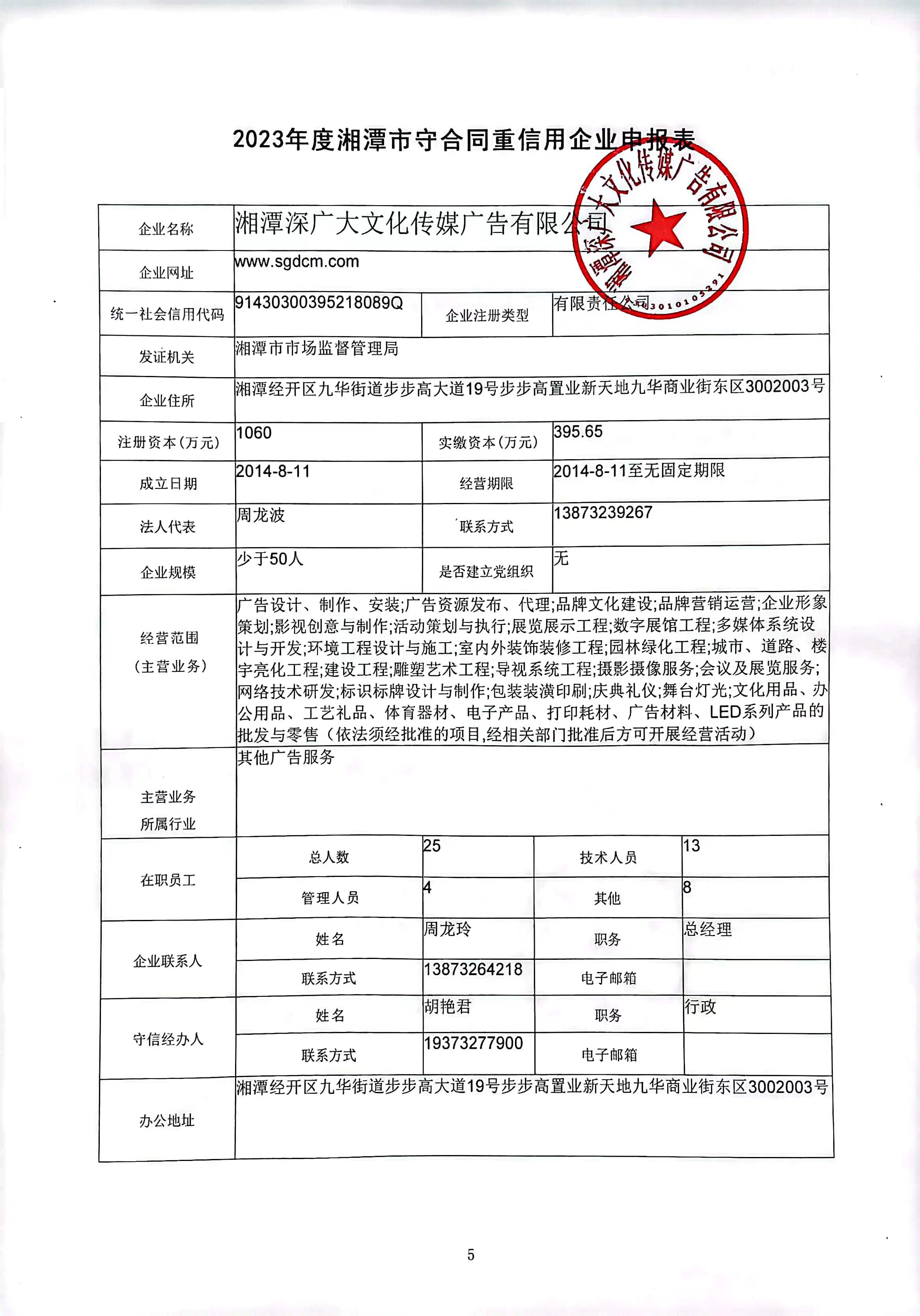 本企業(yè)根據(jù)《湘潭市守合同重信用企業(yè)申報(bào)規(guī)定》等編制 2023 年度企業(yè)信用報(bào)告書,并保證本報(bào)告書內(nèi)容真實(shí)、準(zhǔn)確、完整。
