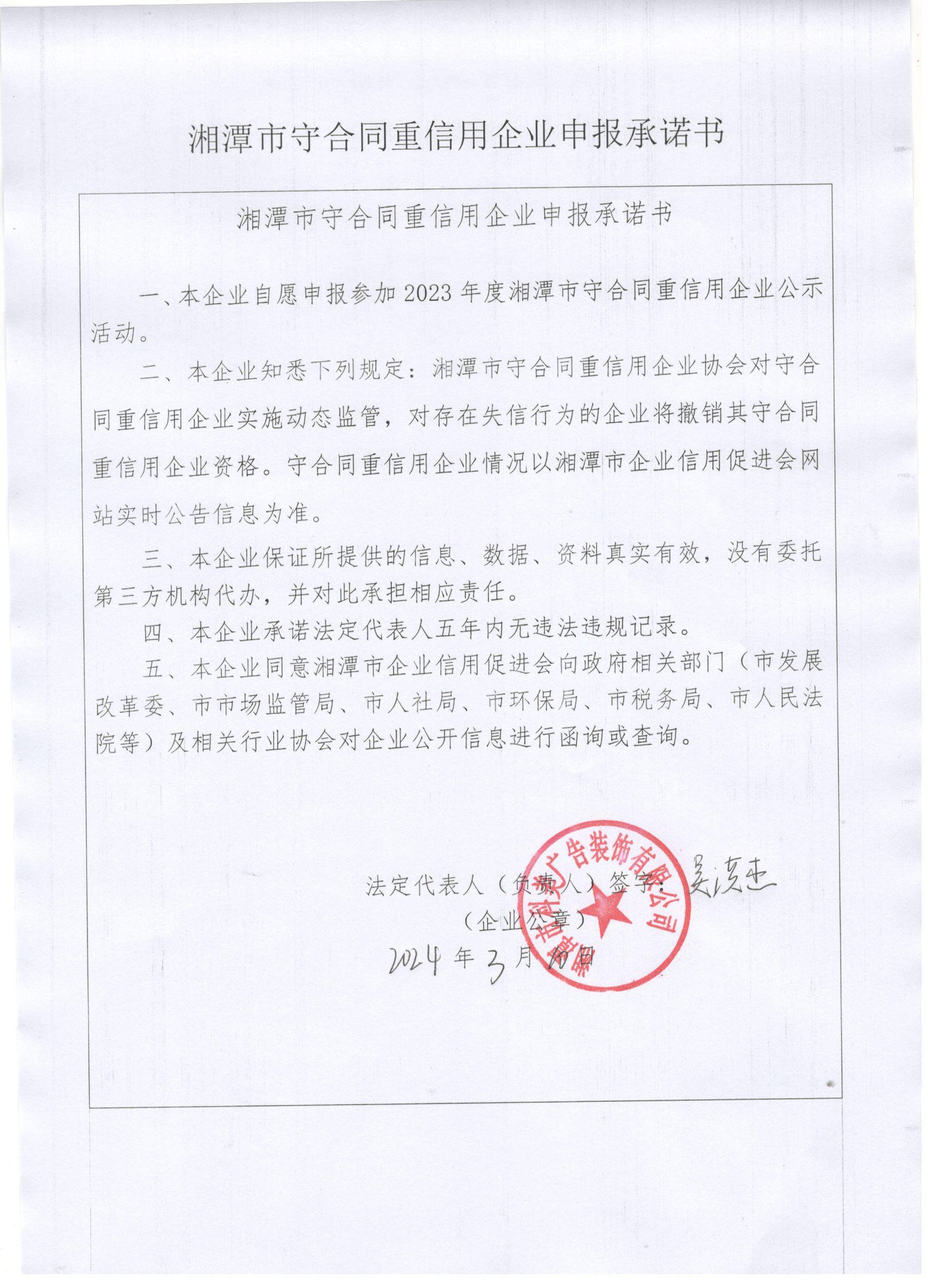 本企業(yè)根據(jù)《湘潭市守合同重信用企業(yè)申報規(guī)定》等編制 2023 年度企業(yè)信用報告書,并保證本報告書內(nèi)容真實、準確、完整。